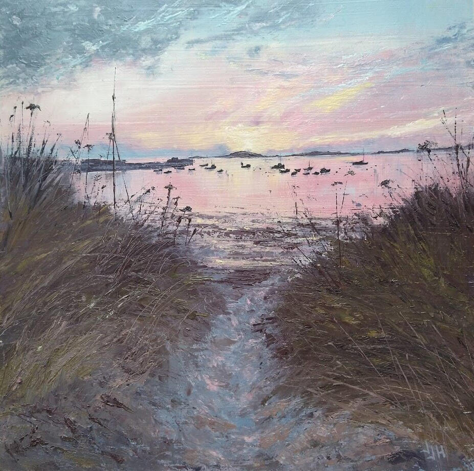 My painting journey started off with sketching, watercolour and pen, then I moved onto to acrylics, oils and other media. I am now lucky enough to be regularly undertaking commissions and although I’ll have a go at painting any subject, my heart lies in the power of the sea, stunning Cornish sunsets, local landscapes, and the beauty of light in nature.