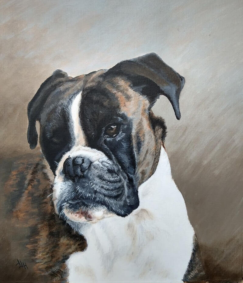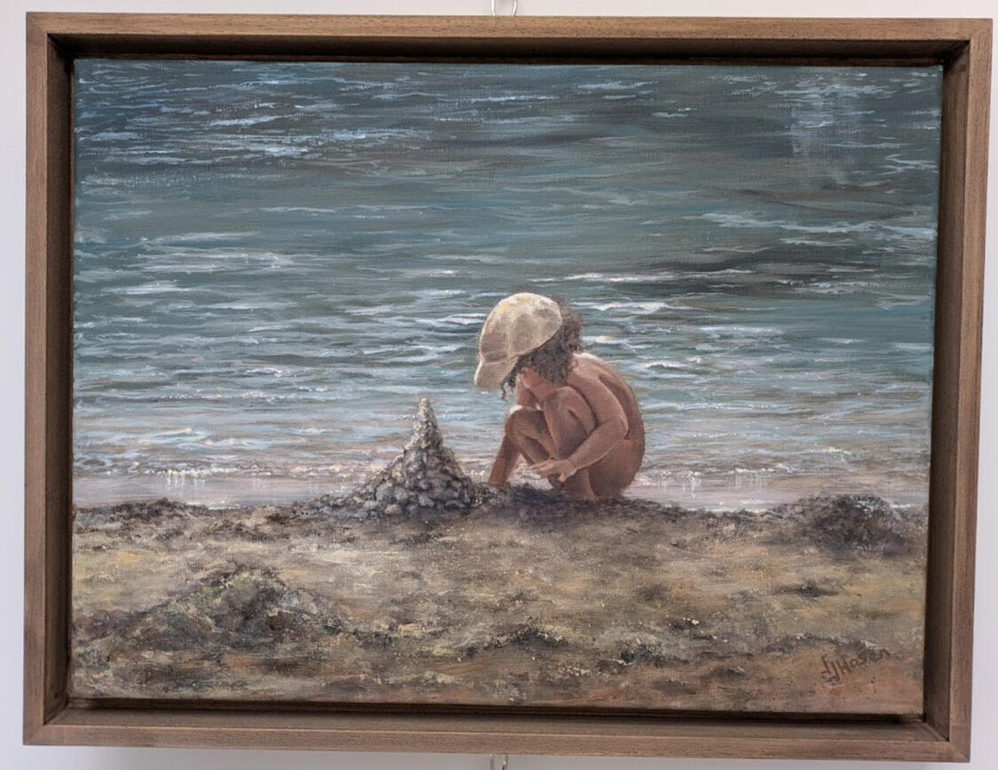 (Acrylic on canvas board - Mounted in natural wood frame behind glass) £250