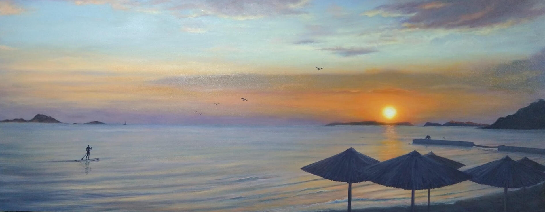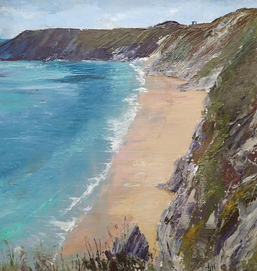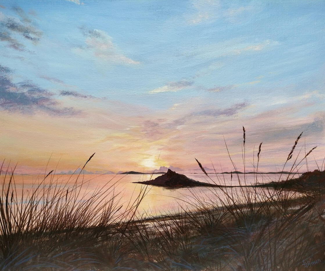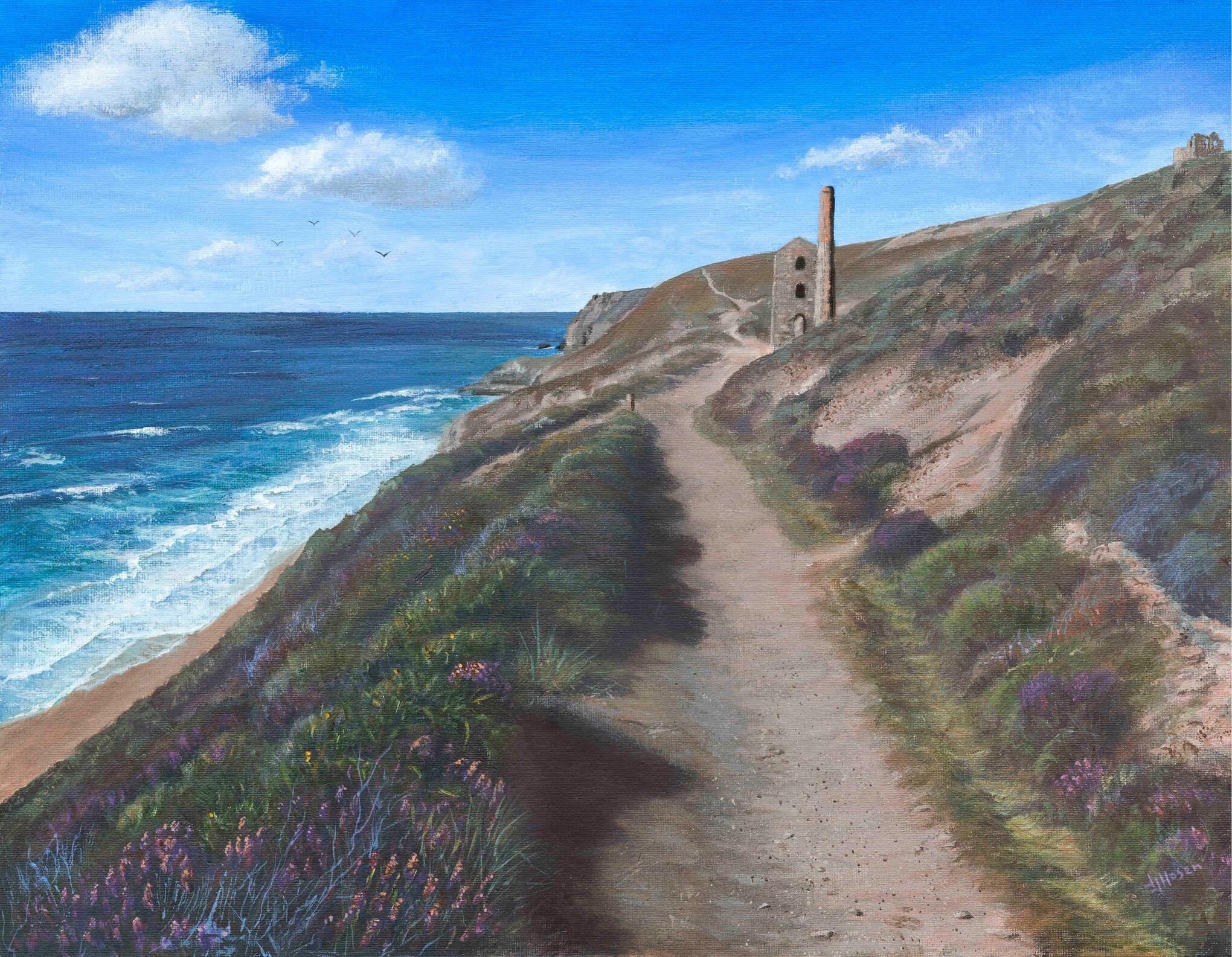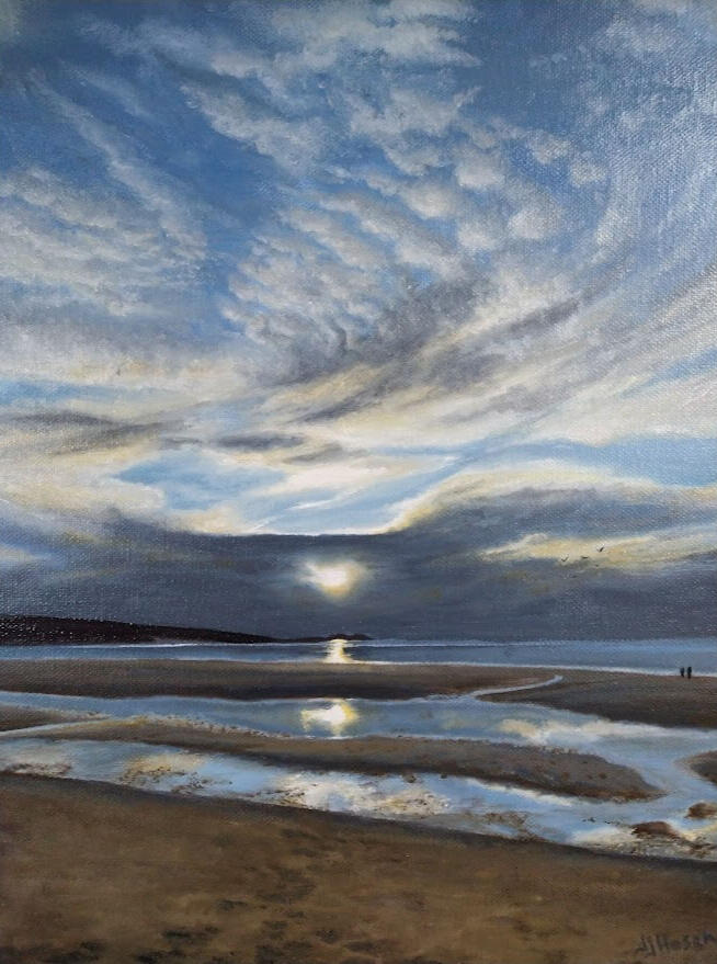 My painting journey started off with sketching, watercolour and pen, then I moved onto to acrylics, oils and other media. I am now lucky enough to be regularly undertaking commissions and although I’ll have a go at painting any subject, my heart lies in the power of the sea, stunning Cornish sunsets, local landscapes, and the beauty of light in nature.