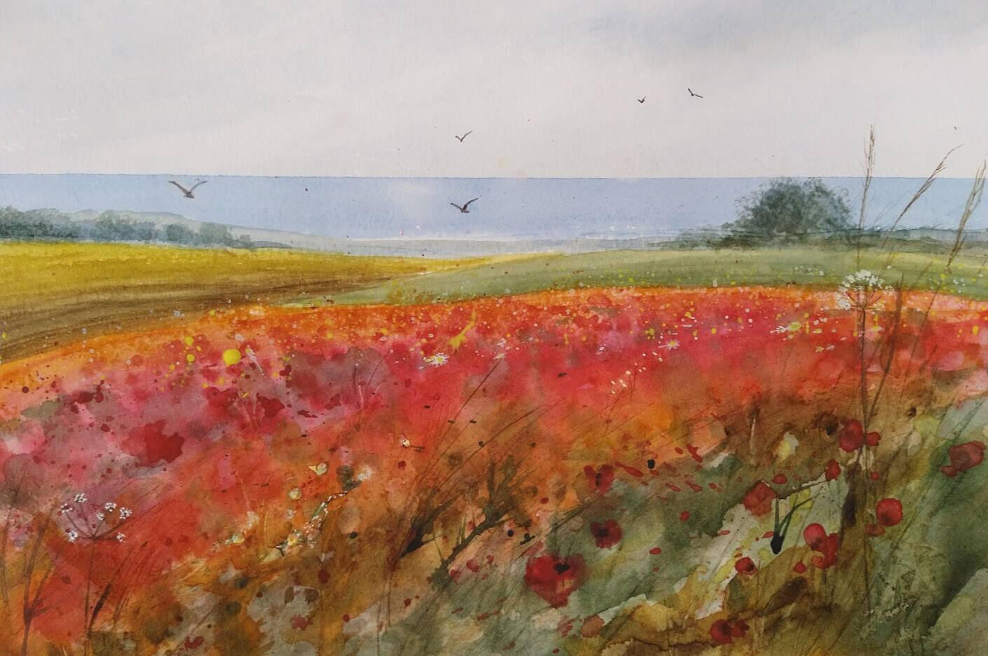 "Pentire Poppies" (Watercolour - framed in natural wood with mount) £200